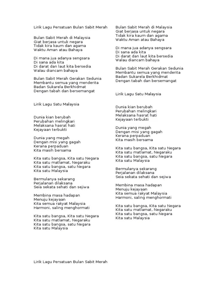 Lagu Bulan Sabit Merah Malaysia Lirik - Lirik Dan Lagu Bsmm Pdf. Bulan sabit merah di malaysia giat berjasa untuk negara. Bulan sabit merah di malaysia giat berjasa untuk negara tidak kira kaum dan agama waktu aman atau bahaya di mana jua adanya sengsara