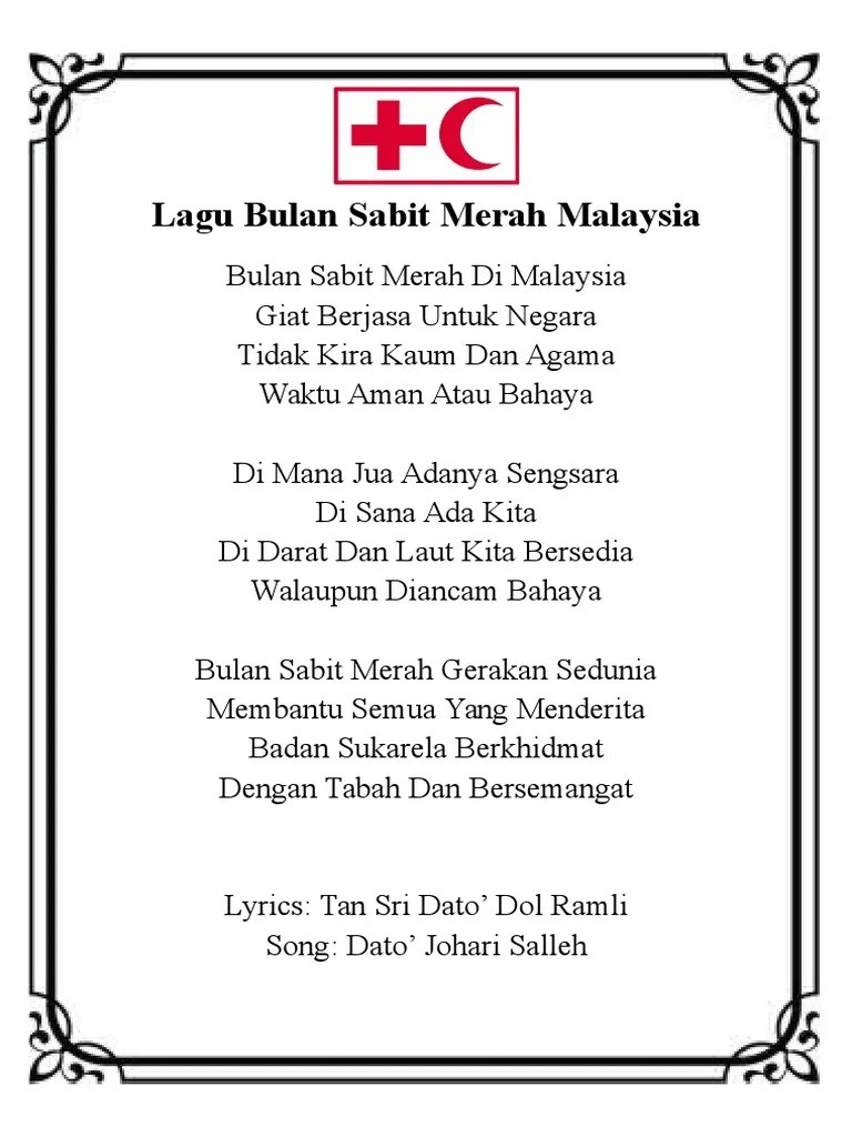 Dato' dol ramli @ song: Penukaran nama persatuan dari pertubuhan palang merah malaysia (malaysian . Lagu badan bulan sabit malaysia (lirik). All the videos, songs, images, and graphics used in the video belong to their respective owners and i or this channel does not claim any right over them.